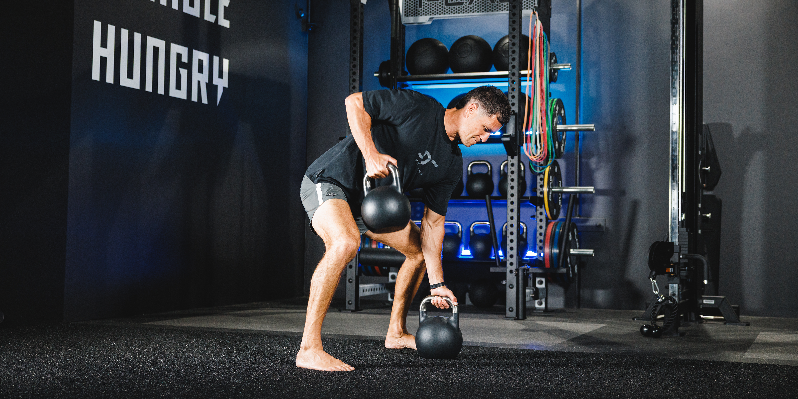 This program blends bodyweight and kettlebell training, focusing on functional strength, mobility, and endurance to improve movement in and out of the water.